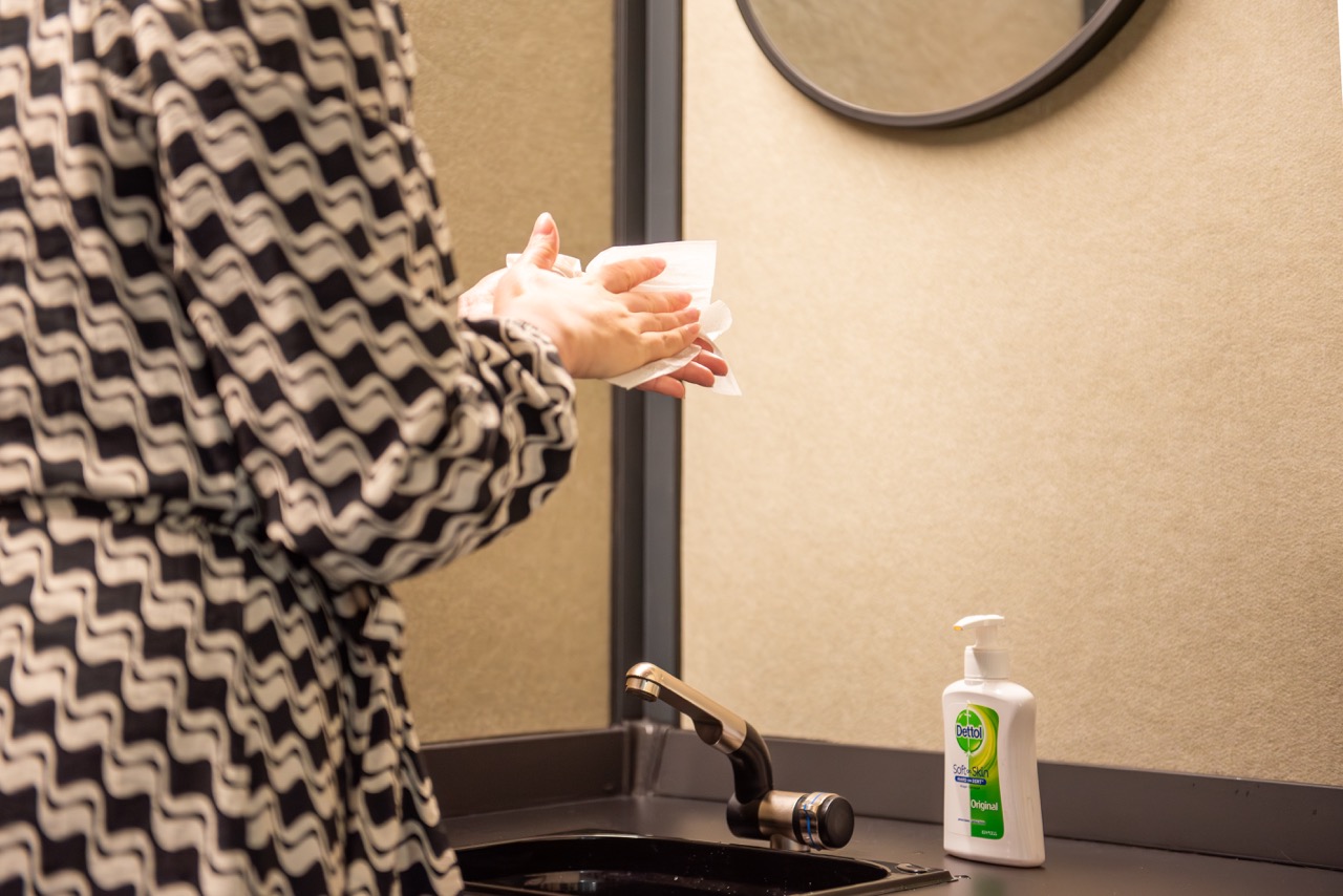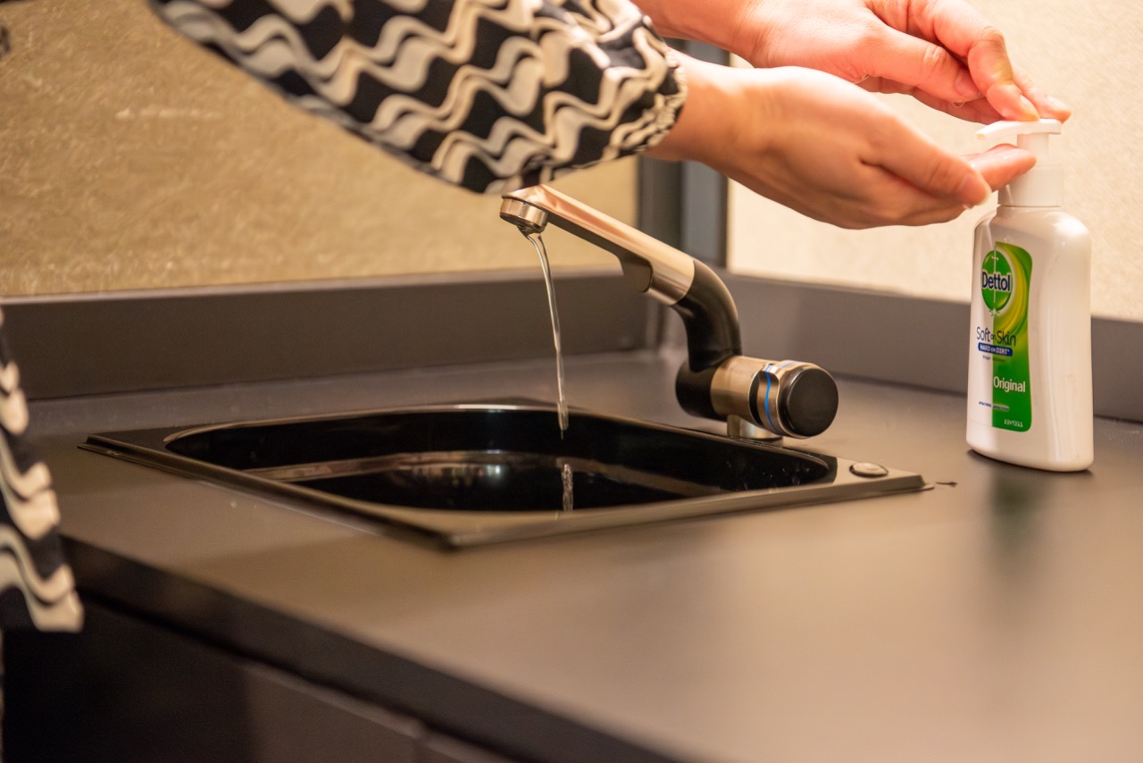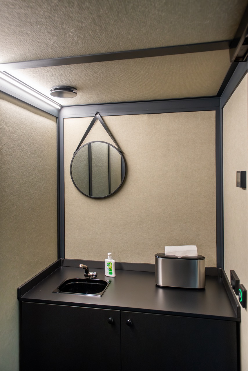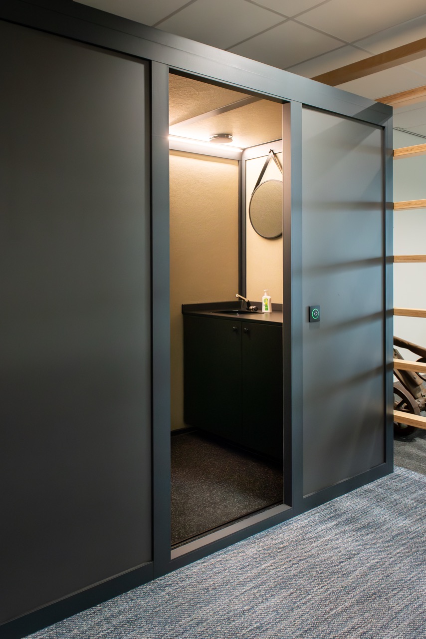 Standaard is Earth uitgerust met een keukenblok, inclusief spoelbak, en is ze voorbereid op een optionele koelkast en comfortabele stoel. De cabine is volledig akoestisch afgewerkt: de vloer, wanden en het plafond zijn voorzien van geluidsabsorberend materiaal. Zo creëer je een serene ruimte waar moeders ongestoord kunnen kolven of zorgmomenten kunnen inplannen.