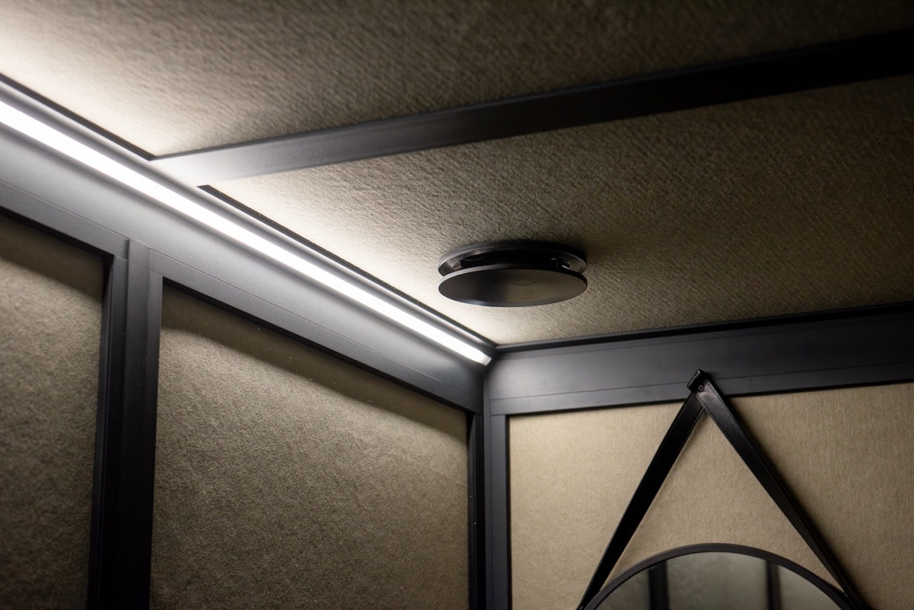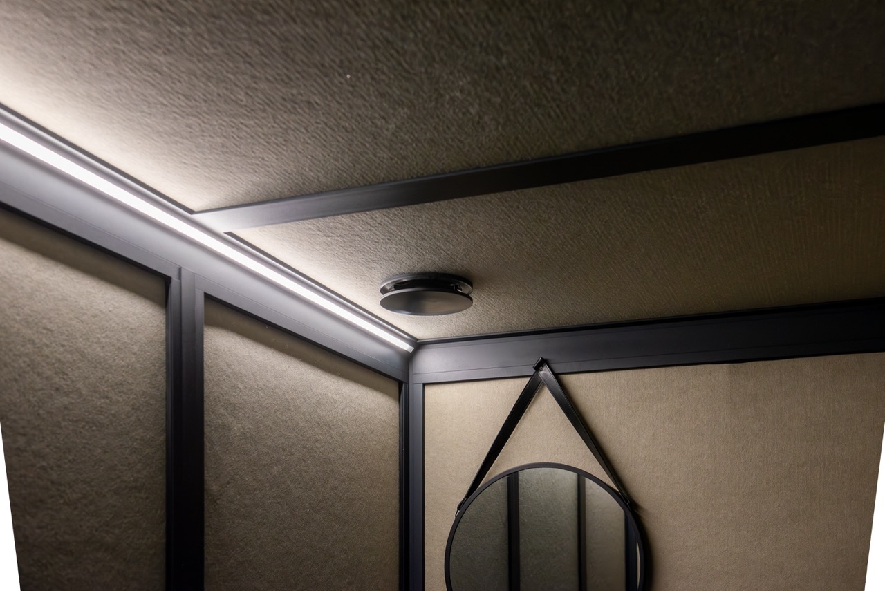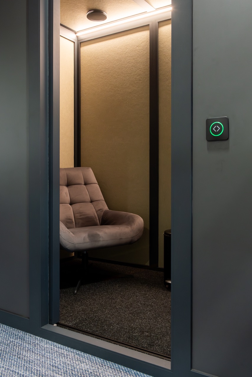 Dankzij de automatische schuifdeur, het geluidswerend glas en het elegante design, past Earth naadloos in elk modern kantoor of publieke ruimte. Deze kolfruimte is bovendien volledig demontabel en eenvoudig te verplaatsen – ideaal voor flexibele werkplekken.